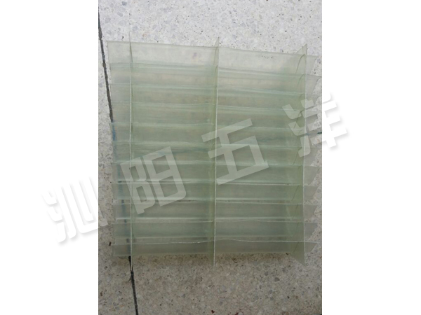 收水器片采用FRP材料擠壓成型,在收水器的片材中增加了進口碳黑作為添加劑大大提高了片材的抗紫外線和抗老化性能。該收水器具有收水效率高、氣流阻力小、強度高、不變形、安裝維修方便、使用壽命長、阻燃性好等優點。